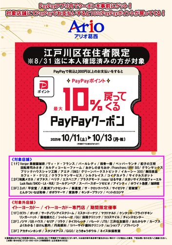 ※他のアリオで発行しているPayPayクーポンは利用できません。