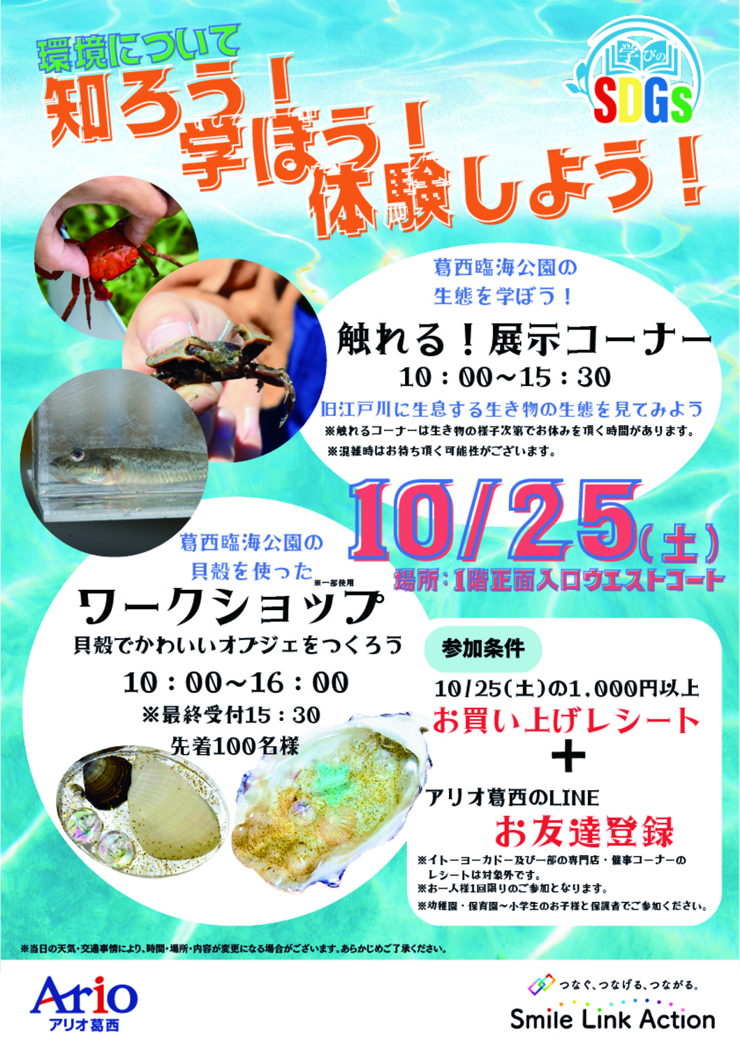 アリオモール専門店での10月25日(土)当日のお買上げ1,000円以上(税込)のレシートのご提示及びアリオ葛西公式LINEのおともだち登録でご参加いただけます。