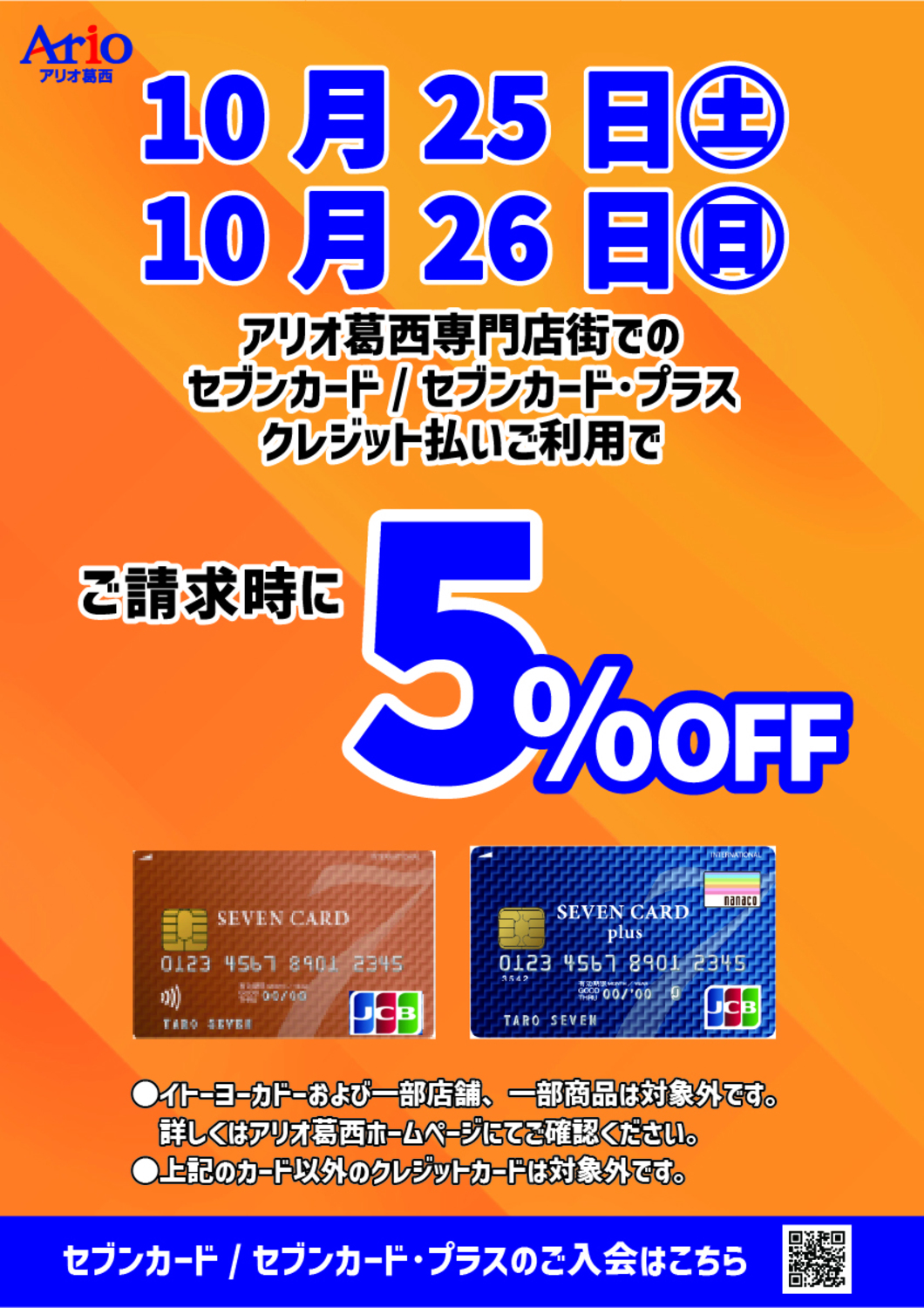 10/25(土)と10/26(日)にアリオモール専門店街でのお買い物で