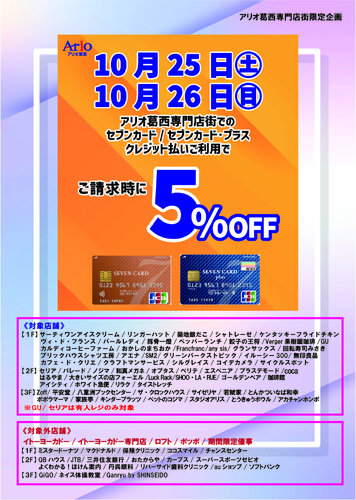 お得な機会に、ぜひアリオ葛西でお買い物をお楽しみください♪