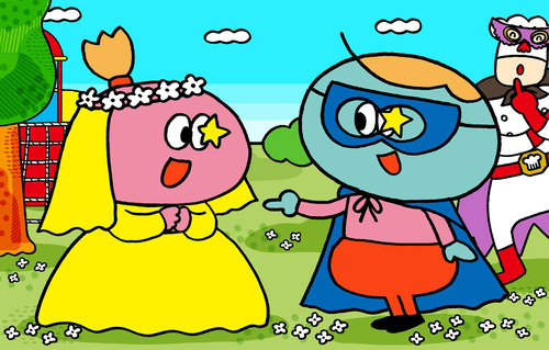 シータンとソータンは「ごっこあそび」が だ~いすき。今日は広場で、ヒーローとプリンセスに なりきっています。ところが とちゅうで、おたがいのやくを かえてみよう ということになって……?
