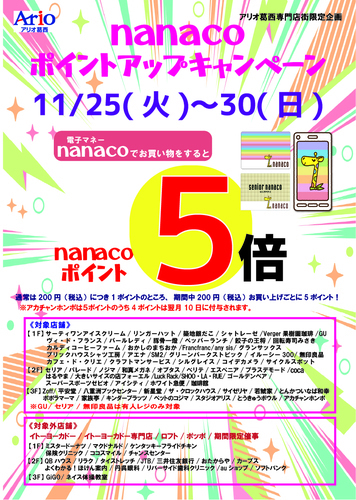 アリオ葛西専門店街にてnanacoでお買い物をするとnanacoポイント5倍!