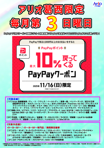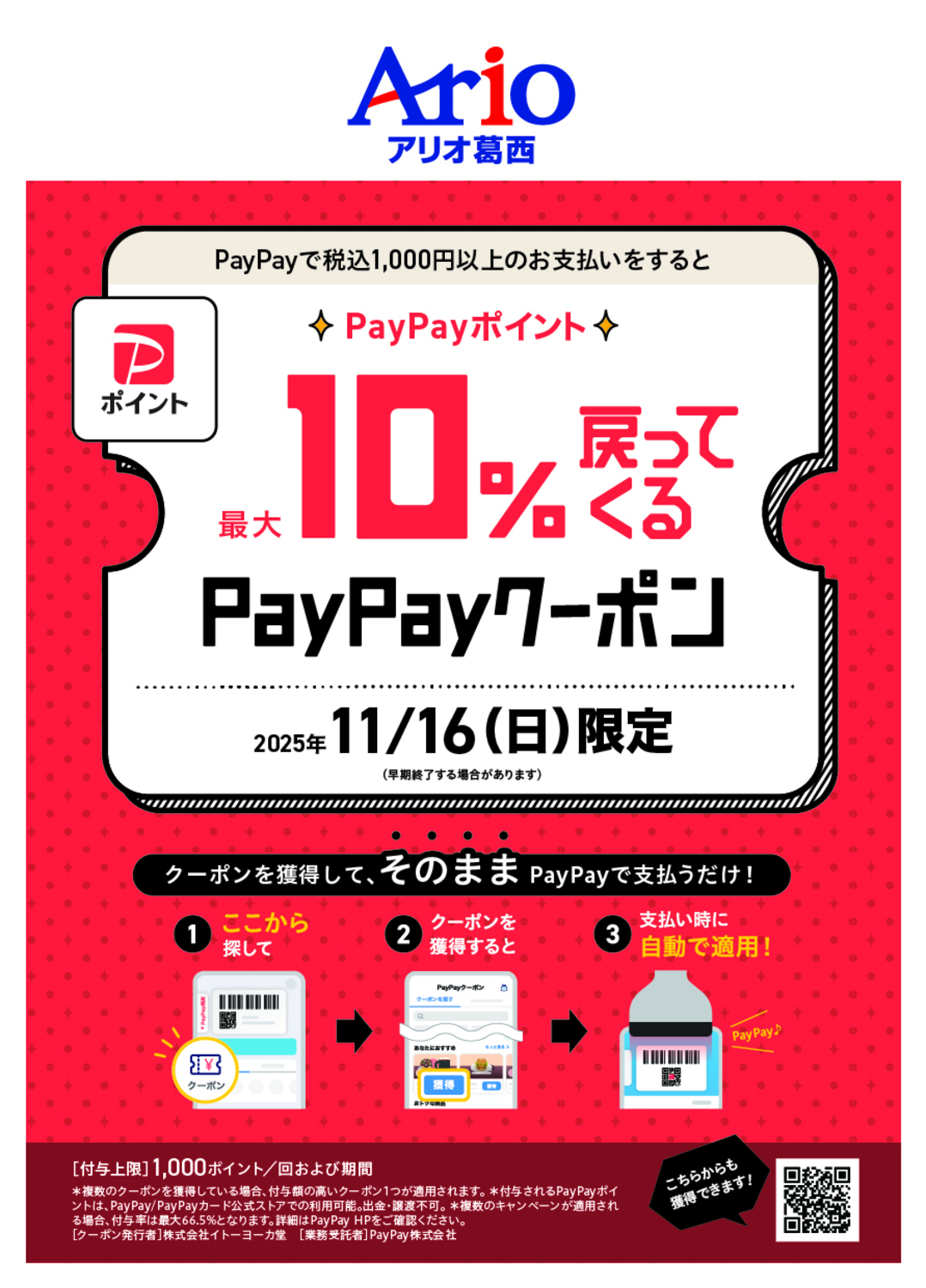 ※他のアリオで発行しているPayPayクーポンは利用できません。