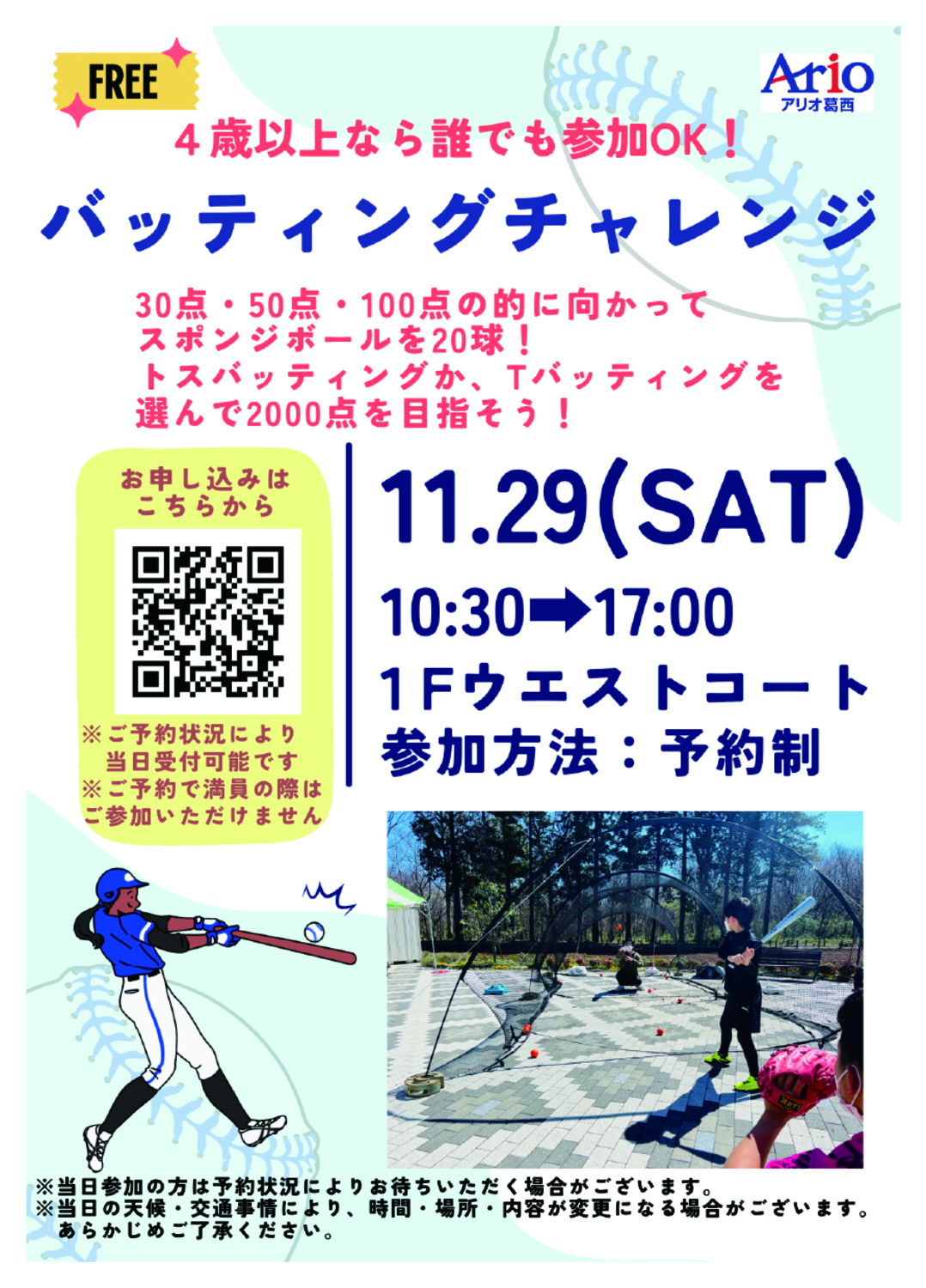 アリオ葛西にバッティングドームを設置してバッティングチャレンジを行います!