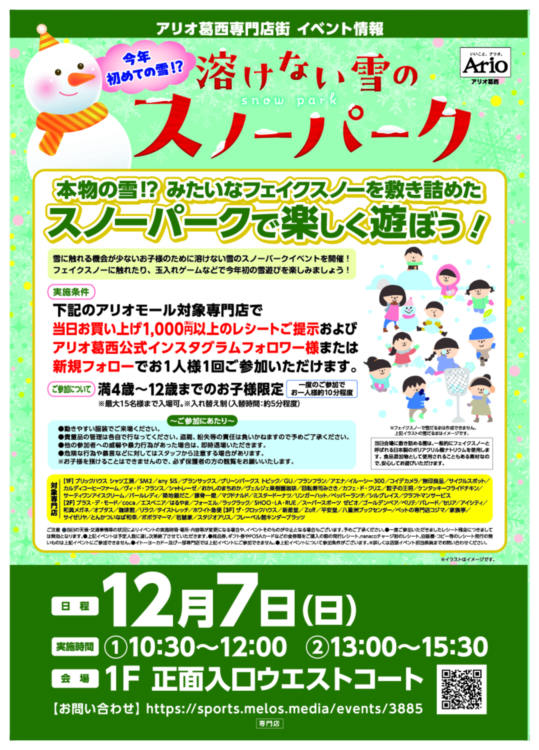 アリオ葛西公式インスタグラムフォロワー様または新規フォローでお一人様一回ご参加いただけます。