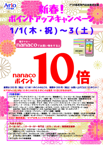 アリオ葛西専門店街にてnanacoでお買い物をするとnanacoポイント10倍!