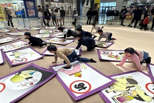 カラダを動かして、巨大なカルタをゲット! 集まった子ども達でカルタ大会に挑戦。