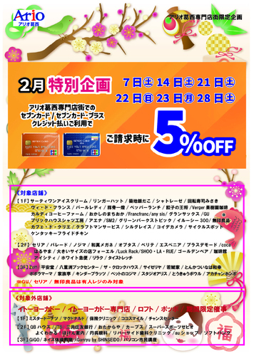 お得な機会に、ぜひアリオ葛西でお買い物をお楽しみください♪