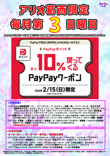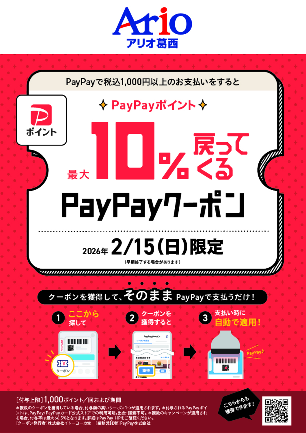 ※他のアリオで発行しているPayPayクーポンは利用できません。