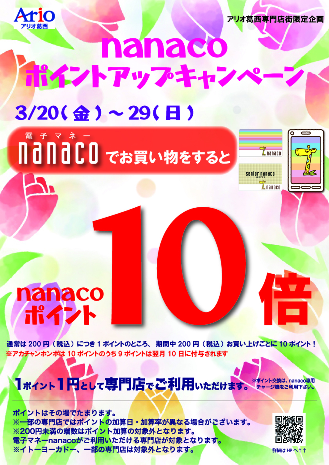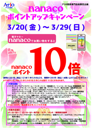 アリオ葛西専門店街にてnanacoでお買い物をするとnanacoポイント10倍!