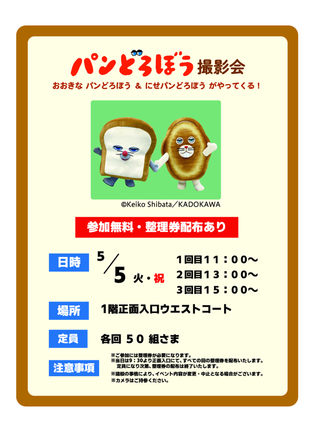 ・開店後、整理券が余っている場合は、整理券の配布場所をイベント会場に移動いたします。