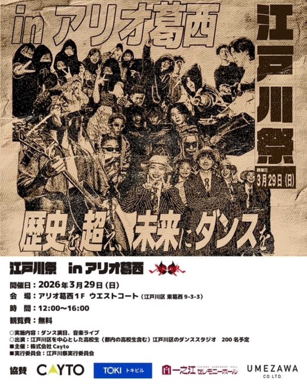 江戸川区を中心とした高校生(都内の高校生を含む)、江戸川区のダンススタジオが出演するダンス演目・音楽ライブイベント!