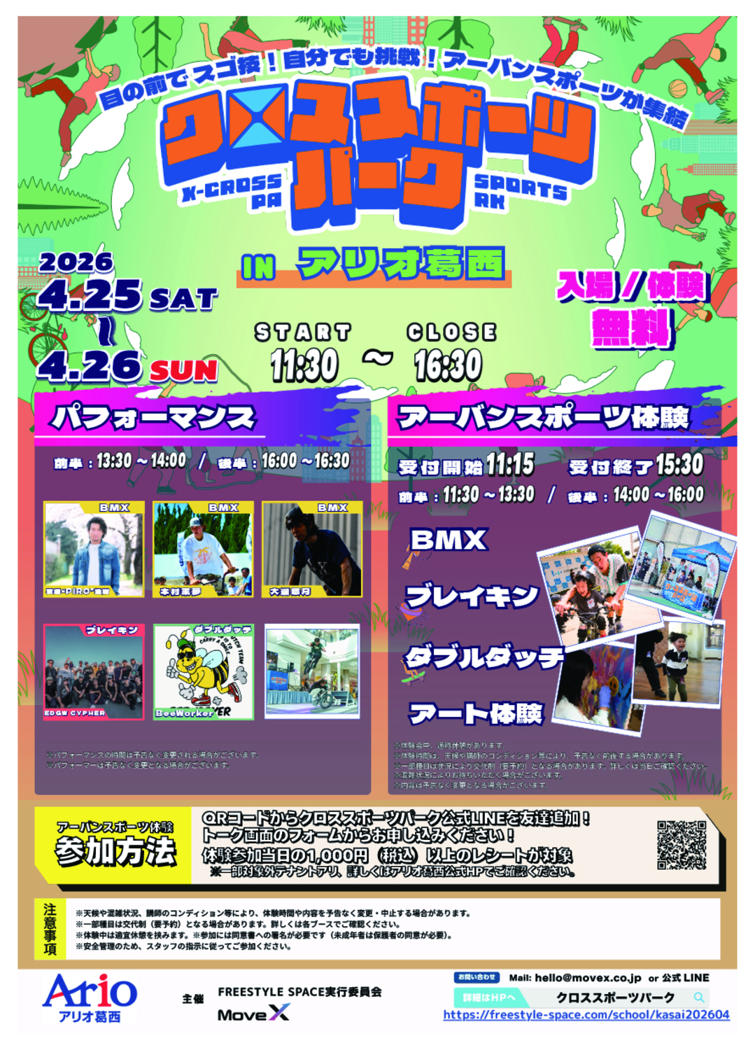 BMX、ブレイキン、ダブルダッチ、アート体験