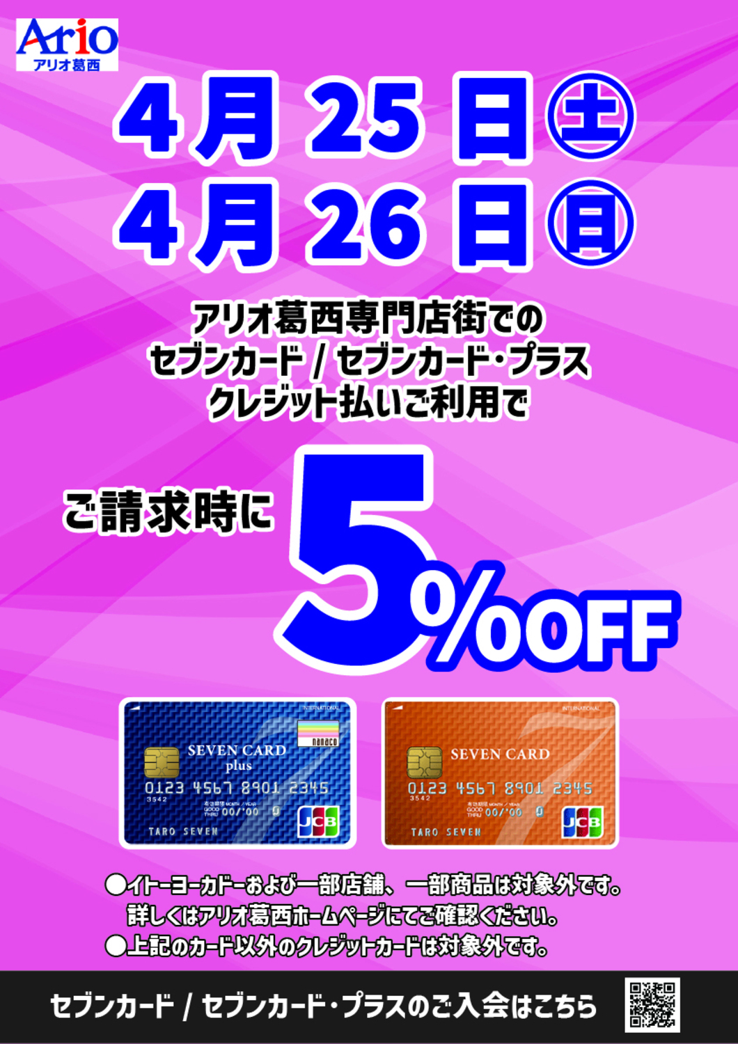 お得な機会に、ぜひアリオ葛西でお買い物をお楽しみください♪