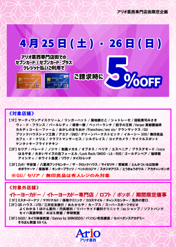 4/25(土)・4/26(日)2日間アリオモール専門店街でのお買い物で