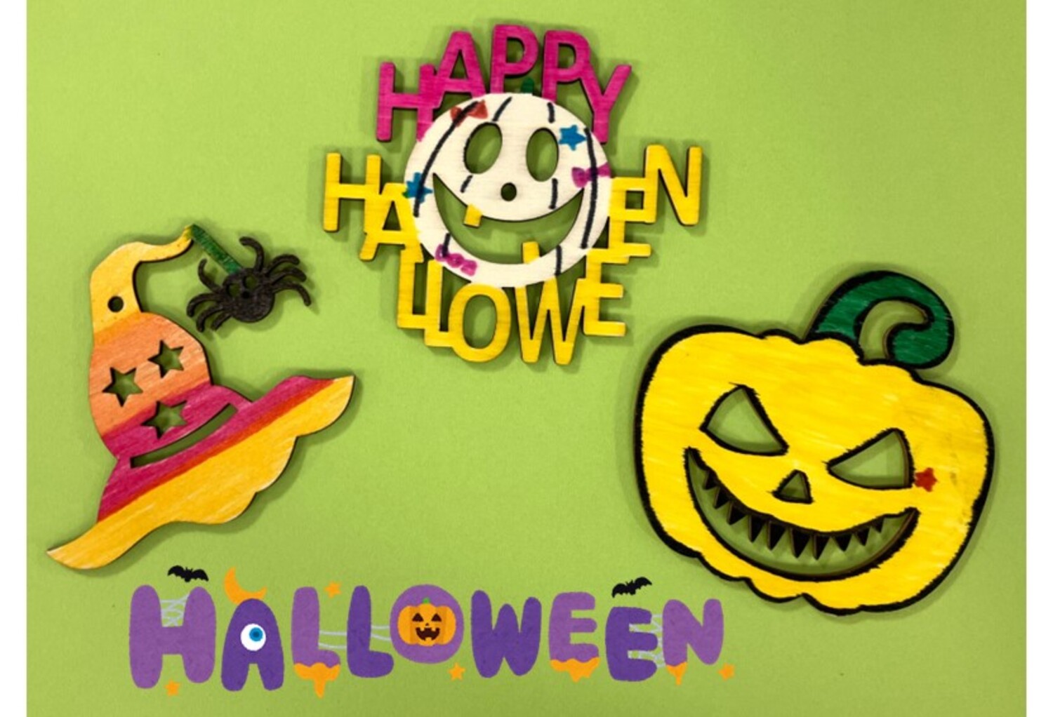 みんなでハロウィンのお祭りをお祝いする木製オーナメントを作りましょう!