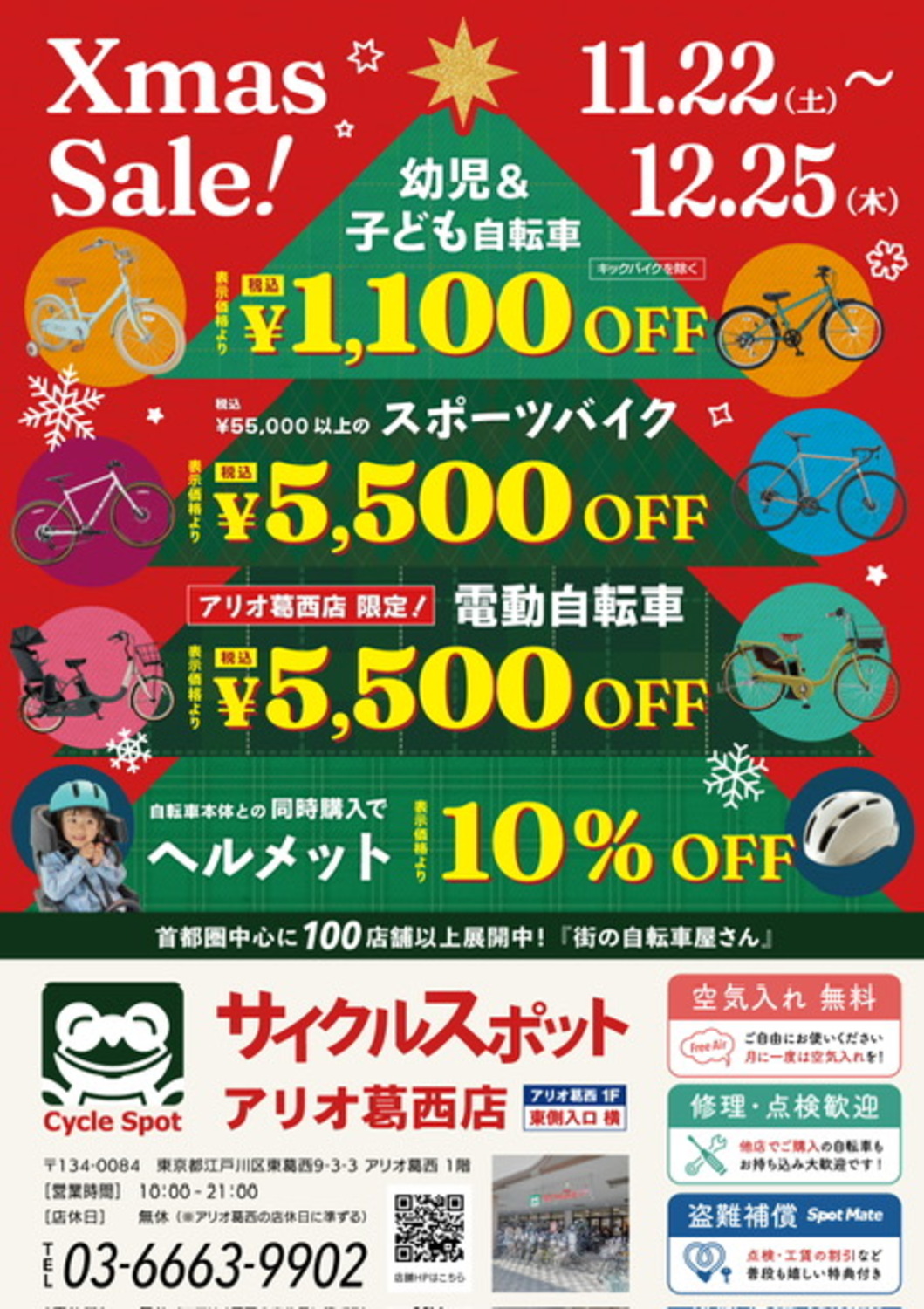 クリスマスセール!アリオ葛西店限定セールもあります!電動自転車税込5500円off!