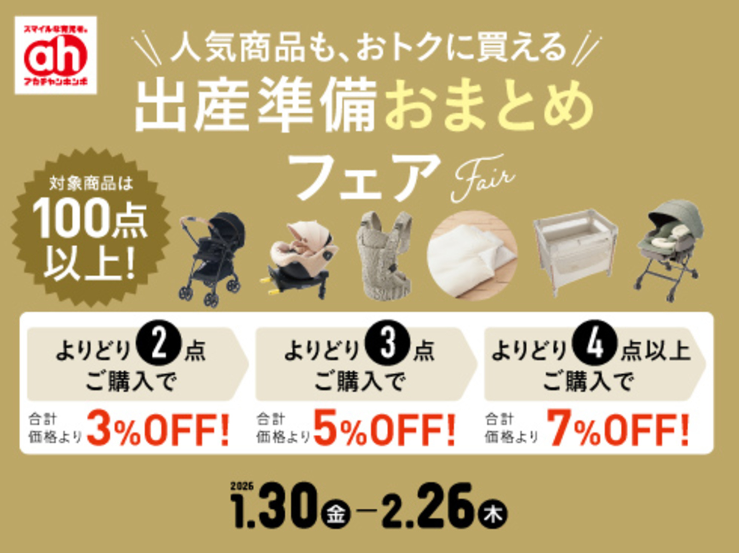 ベビーカー、チャイルドシート、抱っこ紐、ベビーラックなどの対象商品を よりどりでご購入いただくと、最大7%OFF◎